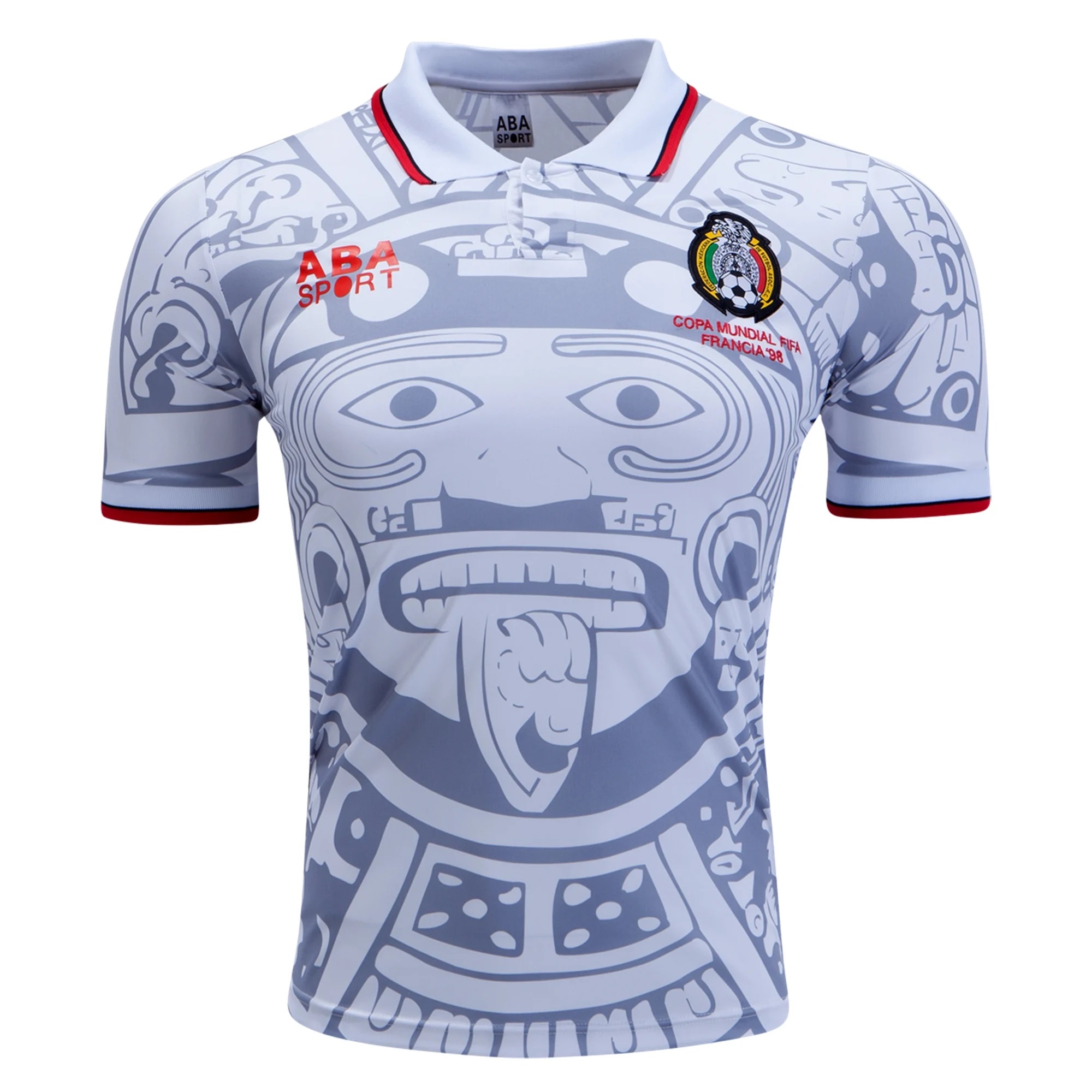 The away version of one of the greatest and most iconic jerseys in history. Worn during the 1998 World Cup, the design is inspired by the Aztec calendar. The two-sided shirt has the image on the front and back.